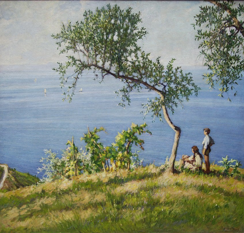 Antonio Discovolo nacque nel 1874 a Bologna e iniziò la sua attività artistica a Firenze a fianco di Giovanni Fattori. In seguito, a Roma conobbe Nino Costa e si avvicinò al gruppo In Arte Libertas. Fu amico di Plinio Nomellini, Enrico Lionne e dei più importanti pittori liguri, degli scrittori e saggisti Orlando Grosso e Ettore Cozzani. Inizialmente influenzato dalla tecnica impressionista francese, aderì per un breve periodo al Divisionismo focalizzando la propria attenzione sugli effetti cromatici e luministici, tecnica alla quale diede però una personale impronta. L’artista iniziò a frequentare la costa ligure già dai primi anni del Novecento; infatti nel 1902 è a Tellaro, luogo che lo affascina e lo induce a trasferire la sua residenza nel 1905 a Manarola e, nel 1910, definitivamente nel “nido” di Bonassola. Dal 1924 al 1927 l’artista cercò nuovi spunti pittorici che trovò nella magnifica cittadina di Assisi. Vasta e prestigiosa fu la sua attività espositiva: più volte presso la Galleria Lino Pesaro a Milano; la Biennale di Venezia nelle edizioni dal 1924 al 1930; la Biennale romana nel 1925; la Quadriennale di Torino del 1927, Palazzo Rosso di Genova nel 1932, la Quadriennale di Roma del 1935. Le sue opere si trovano oggi nei più prestigiosi musei, gallerie e collezioni private italiani.