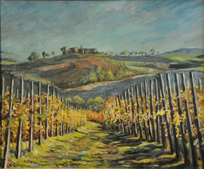 Tutta la mostra, come recita lo stesso titolo, è incentrata sul paesaggio, su vedute della campagna piacentina e parmense, sulle nostre colline colte nelle varie stagioni, ma non mancano chiare e luminose marine liguri dipinte in quel di Sestri e nel bellissimo golfo del Tigullio. Quella di Antonio Ferrari è un’espressione intensa e sentita, che ha senza dubbio assimilato la grande lezione dell’Impressionismo e del nostro migliore ottocento, ma che si veste altresì di una propria autentica originalità per la sua fine e ricercata interpretazione, per quella luce diffusa e costante che sembra provenire dall’interno stesso della materia pittorica.