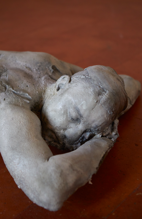 The Sleep (2018) di Antonio Fiorentino è una scultura realizzata durante la residenza a Palazzo Monti, risultato del calco di una persona vivente restituito nelle sue dimensioni reali.