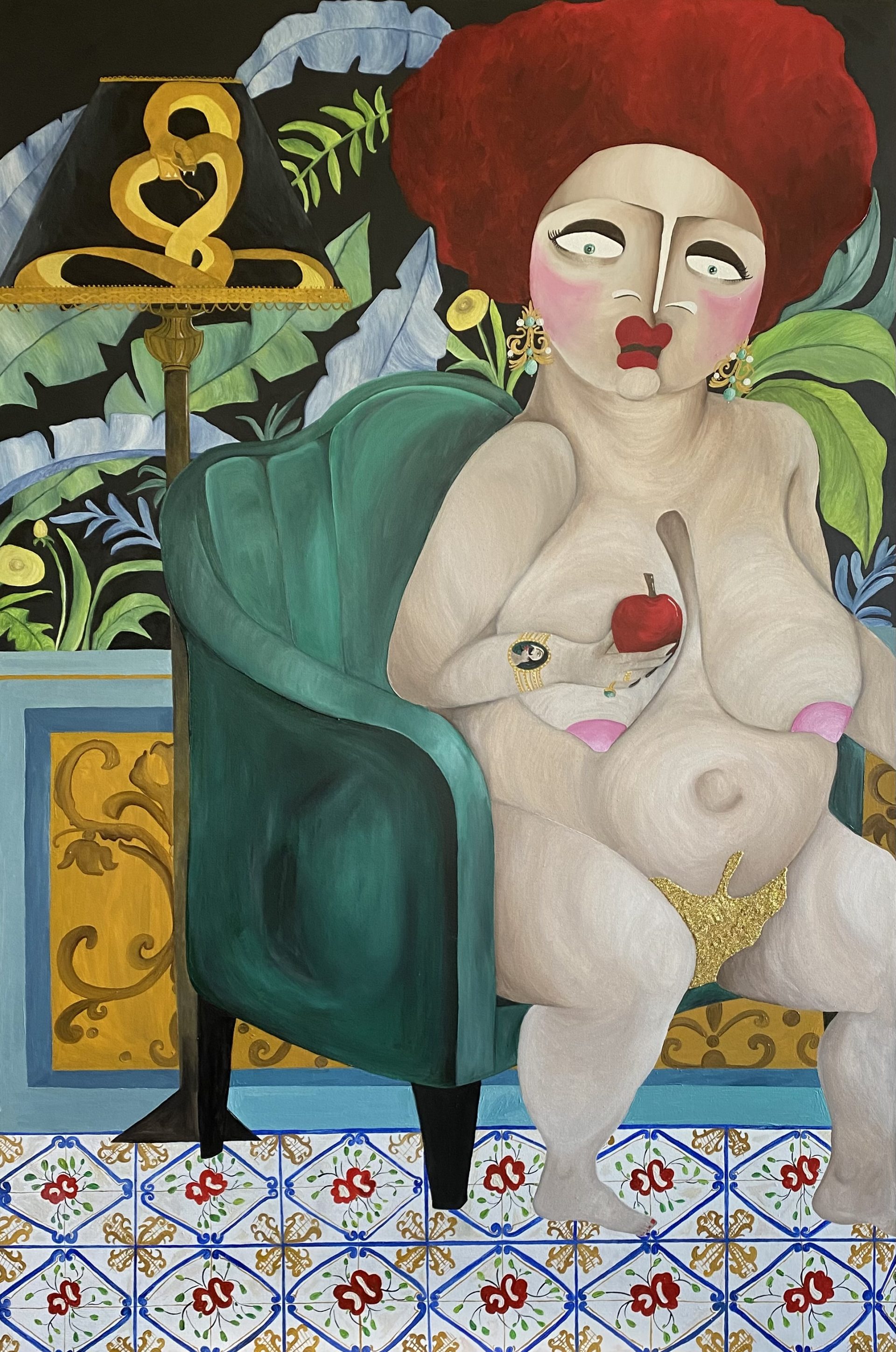 Nelle opere di Antonio assistiamo ad un immaginario divertito e divertente popolato da donne d’altri tempi, regine e sante, vivacizzato da un’ironia lirica e pungente in una figurazione che segue un suo sentiero dove l’immagine è adoperata per dare vita ad una nuova modalità espressiva.