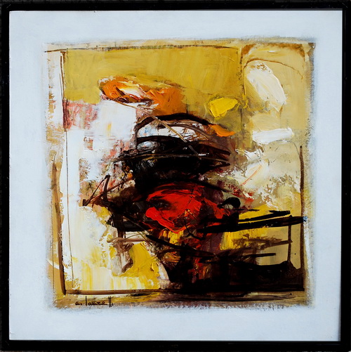 Tensioni tra le forme e i colori, texture, piani sovrapponibili e sfalsati rappresentano un’entità alla ricerca di un equilibrio che ogni elemento ha contribuito a creare spazio; un rapporto spazio/colore che regola dall’interno il sistema dell’opera.