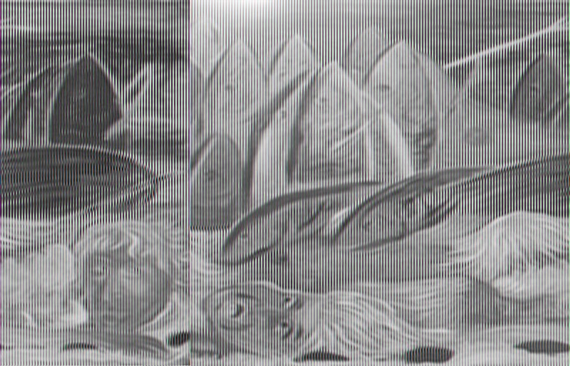 Tele realizzate in tecniche miste sullo sfondo di Stromboli