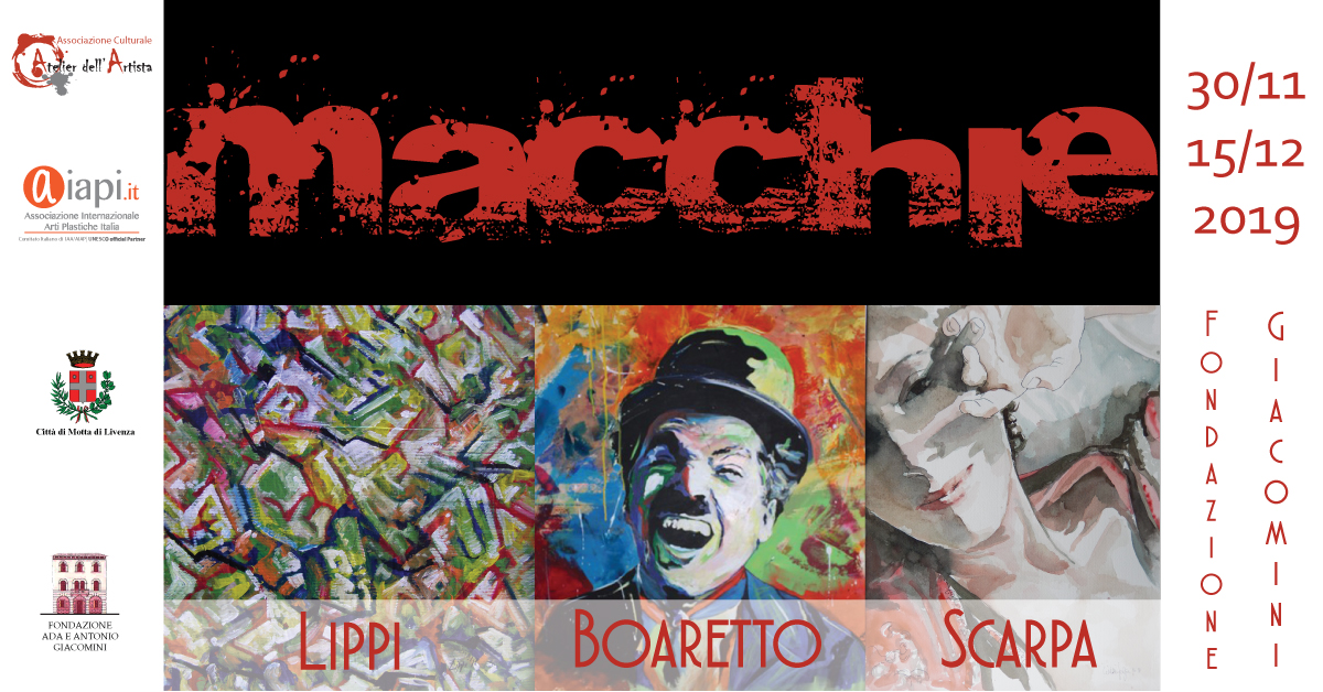 L'Associazione Atelier dell'Artista conclude quest'anno espositivo con questa speciale tripersonale degli artisti vincitori del "1° Happy Days International Art Contest di giugno. Viene proposta quindi una selezione di opere di Antonio Lippi, Luana Boaretto e Cinzia Scarpa. Il percorso è un piccolo assaggio del loro lavoro dove le "macchie" di colore fanno da padrone. Macchie che derivano a volte da una ricercatissima tecnica, a volte dall'istinto dove la mano è guidata da quello che si chiama talento, quel talento che li contraddistingue come artisti. Il risultato è una mostra armonica, piena di colore, attraverso quadri astratti dipinti al buio, figurativi ad acquerello o acrilico e ritratti a carboncino. Un'esposizione che vi porterà tra personaggi famosi di altre epoche, momenti sotto i riflettori e attimi intimi anonimi, di vita quotidiana, carichi di significati.