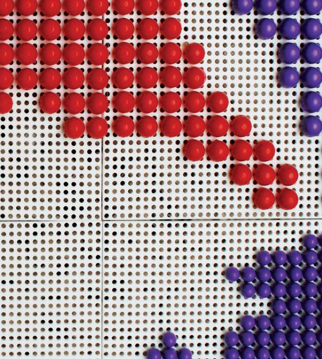 Chiodini Quercetti: pixel, puntini da unire (o separare?), atomi colorati, piccoli moduli di tempo che scorre tra le mani per andare a formare un viso, un paesaggio o forse molto di più. Antonio Marciano osserva da vicino, ha il coraggio di fare a pezzi l’immagine, per poi regalarci la sorpresa di vederla ricomporsi sempre più indietreggiando[…].