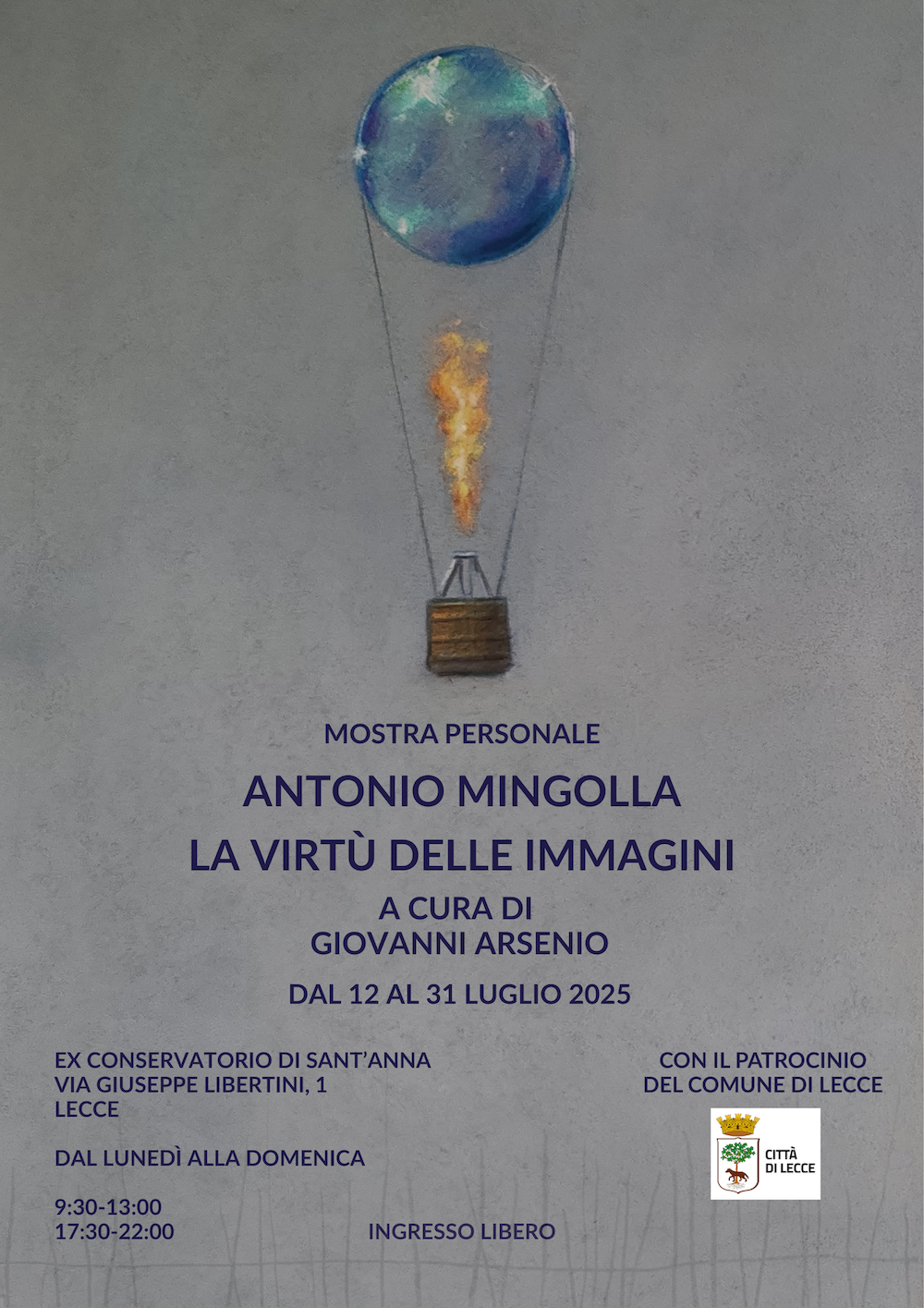 Mostra personale “Antonio Mingolla. La virtù delle immagini”, a cura di Giovanni Arsenio, con il patrocinio del Comune di Lecce.