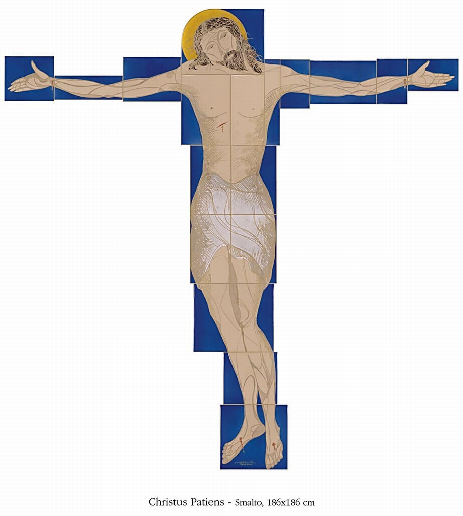 Il Christus Patiens del titolo fa riferimento all’antica iconografia medievale duecentesca che raffigura il Cristo in croce evidenziandone la sofferenza e il patimento in contrapposizione con la tradizione precedenza del Christus triumphans, cioè trionfante, in cui viene rappresentato dando meno enfasi al dramma della morte.