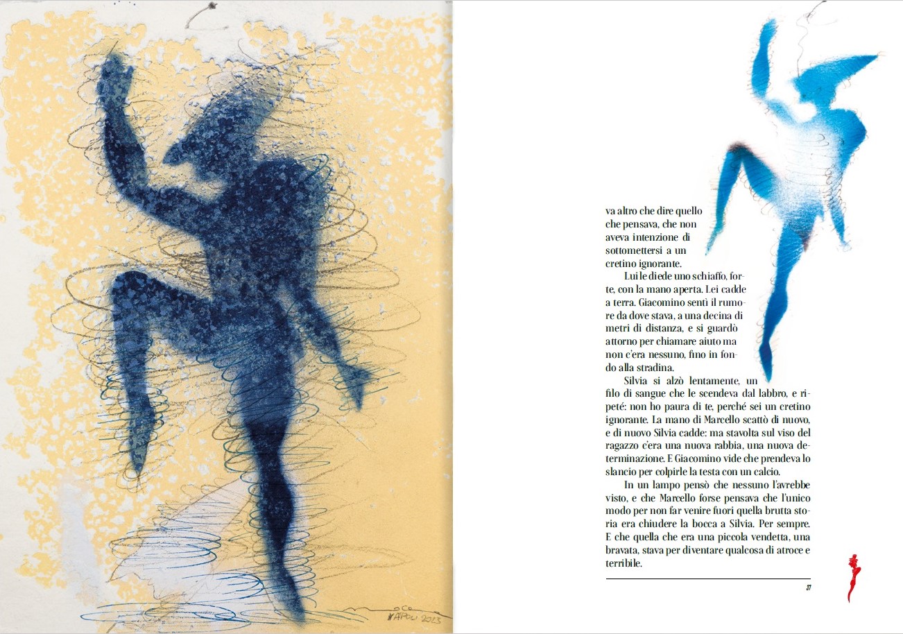 Questo prezioso volume, racchiuso in un originale cofanetto, è stampato su carta naturale di puro cotone 100% della Magnani di Pescia editions da 130g. in edizione pregiata a tiratura limitata in 600 esemplari, di cui 575 in numeri arabi, più 25 esemplari numerati in numeri romani. Ogni cofanetto contiene un volume di 96 pagine con 36 illustrazioni originali del Maestro Antonio Nocera, la coppia Pulcinella e lo Scartellato, sculture/gioiello in argento 925 e smalto, tre incisioni ritoccate a mano, firmate e numerate dall’autore. Ad arricchire il volume, due racconti inediti firmati da Maurizio de Giovanni e Diego De Silva, che dialogano con l’universo visivo di Nocera, ampliandone le suggestioni e offrendo ulteriori chiavi di lettura. La parola scritta si intreccia così con l’immagine, costruendo un percorso che attraversa linguaggi diversi ma complementari.