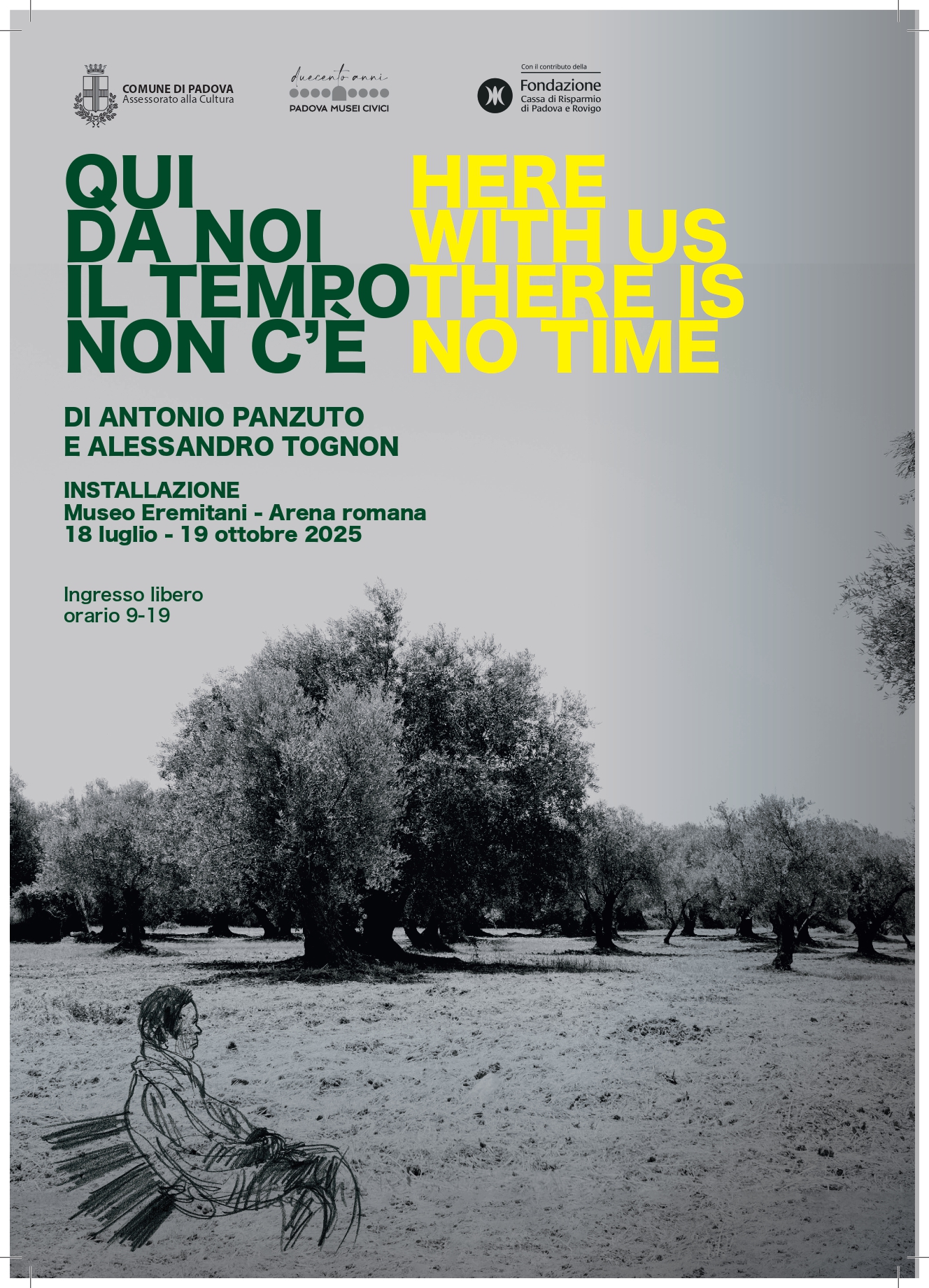Giovedì 17 luglio, alle ore 17.30, verrà inaugurata al pubblico nei giardini dell’Arena a Padova, nel complesso del Museo Eremitani, Qui da noi il tempo non c’è, installazione scultoreo sonora di Antonio Panzuto promossa e organizzata dai Musei civici di Padova con il contributo della Fondazione Cassa di risparmio di Padova e Rovigo.