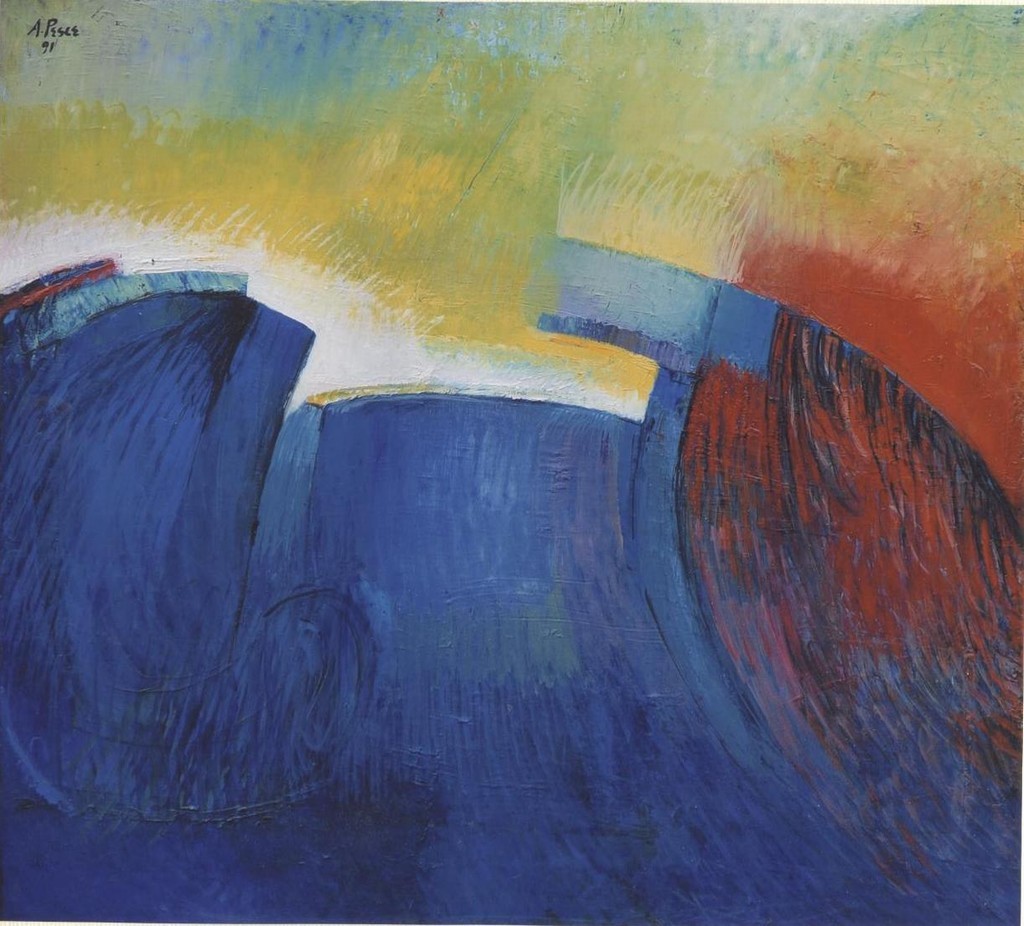 “Nella pittura di Antonio Pesce (Palma Campania 1929), artista segnato da esperienze informali sin dall’inizio degli anni Cinquanta – scrive Marco Alfano, curatore della mostra, nel volume monografico pubblicato dalle Edizioni DEA – l’opera non è altro che una delle infinite possibilità trovate nel registro del colore; è uno sguardo, il suo, che sembra puntare l’attenzione essenzialmente sui silenzi che si aprono nel paesaggio, nell’impaginare quelle ragioni della luce svelatesi ai margini del visibile”.