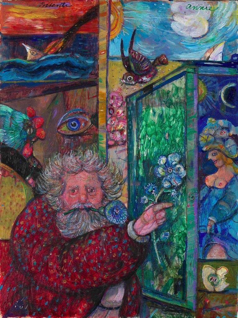 Le opere in mostra testimoniano la perfetta e riuscita traduzione di quel linguaggio in una lingua, se possibile, ancora più lirica. Possenti ha osservato con affetto parte di una storia straordinaria ed è riuscito a raccontarla con il suo personalissimo alfabeto di colori, un alfabeto che a volte va a coincidere con quello del poeta, come nel dipinto ispirato alle immagini splendenti e colorate di Sogno d’estate.