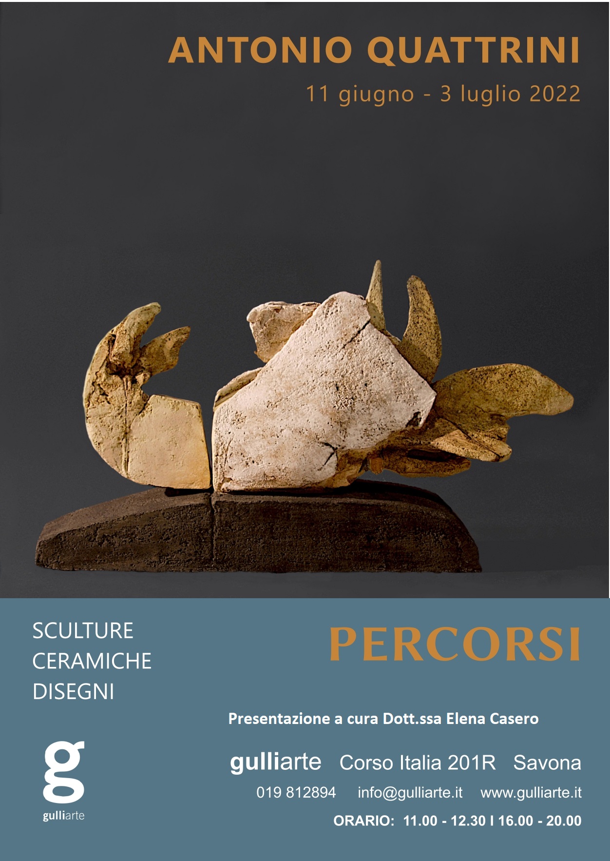 Si inaugura sabato 11 giugno alle ore 18.30 presso la galleria GULLIarte a Savona, Corso Italia 201R, la mostra dello scultore Antonio Quattrini, con la presentazione della Dott.ssa Elena Casero.