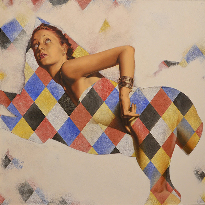 "Trovandoci davanti alle opere di Antonio Radice per la prima volta, il primo istinto è quello di avvicinarsi e toccarle con le proprie mani… a quel punto ci si rende felicemente conto che le imponenti e ammiccanti figure femminili non sono decollages, bensì una contemporanea pittura manierista. In effetti la pittura di Radice non può essere nulla di più lontano dalla tecnica del decollage o dei ready made, lui è un vero e proprio pittore accademico con la malinconia circense nell’animo" - queste le parole della direttrice artistica della galleria, Consuelo Hernandez, per descrivere il lavoro dell'artista.