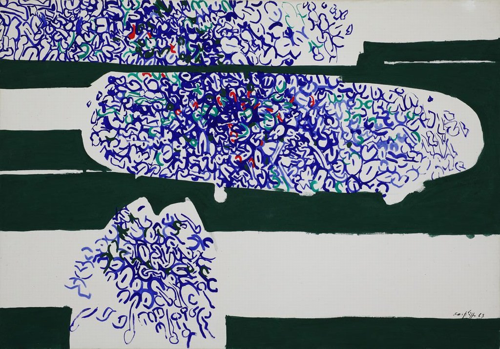 Questi dipinti, nel frattempo cresciuti per dimensione, vengono esposti alla Biennale di Venezia, dove Sanfilippo è invitato molte volte, e dove nel 1966 gli viene assegnata una vasta e prestigiosa sala personale: un episodio che ne stigmatizza definitivamente il profilo di grande maestro dell'astrattismo italiano. "Su queste opere - aggiunge D'Amico - abbiamo inteso incardinare l'esposizione alle FAM di Agrigento, che s'avvale anche della presenza dei maggiori dipinti conservati nelle collezioni pubbliche siciliane oltre che del contributo di molti prestiti di collezionisti privati, fra questi molti dipinti inediti, mai prima d'ora esposti pubblicamente".