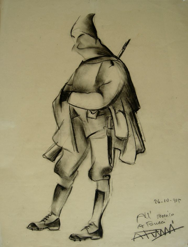 Sperimentazioni che si ritrovano nelle opere grafiche di Adriana Bisi Fabbri (Arros Pennacchi Rossi 1915), Leonardo Dudreville (Studio per Eroismo Tragedia Follia Asfissia 1914 ca., Studio per urto tragico 1913 ca.) Carlo Erba (Donna che legge il giornale 1914, Fanciulla alla finestra 1913-14), Achille Funi (Corso Monforte 1911, Ritratto di Bucci volontario 1915), proposte in mostra con quelle di altre personalità che animavano le frequentazioni della giovane avanguardia milanese in quello stretto giro di anni: Umberto Boccioni (La madre davanti al tavolo con le forbici 1910), Aroldo Bonzagni (Passeggiata romantica 1912-1913, Al pesage di San Siro 1912-1913, Signora con grande cappello 1913), Anselmo Bucci (Nemico in vista. Dosso Casina 1915, La corvée delle munizioni 1915), Carlo Carrà (Scomposizione di testa 1912), Filippo Tommaso Marinetti e Umberto Boccioni (Lettera futurista e Lettera tipo Cangiullo 1915), Romolo Romani (Il credente), Ugo Piatti (Ritratto di Luigi Russolo), Mario Sironi (Composizione futurista 1915 ca., Cavallo e manichini 1915-1916 ca.).