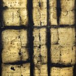 Il nuovo ciclo di Fondi Persi si compone di 13 tele. Il punto di partenza è il ritrovamento di una Divina Commedia antica e la volontà che condivide con Dante di voler svegliare le anime degli uomini. L’uomo non è mai solo e l’artista vuole gridare che è solo insieme che usciremo a riveder le stelle