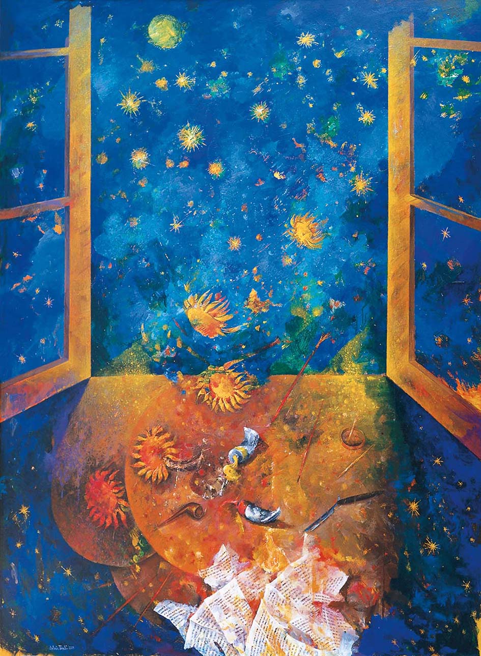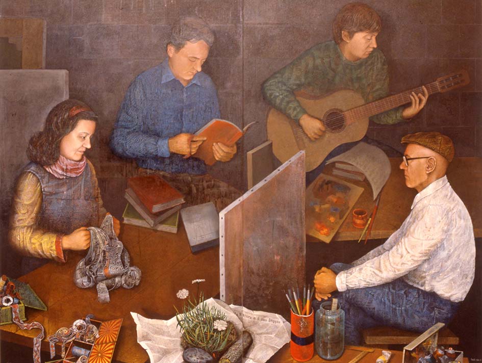I vari cicli che ho proposto nel tempo, essendosi susseguiti per una trentina d’anni, rivelavano esiti pittorici piuttosto diversi poiché durante questo lungo tempo credo si sia verificato un processo progressivo di crescita e una presa di coscienza più risoluta nei confronti del mondo oggettivo che volevo indagare. In questo primo periodo le tematiche erano rivolte al tormentato mondo proletario, al lavoro operaio, all’emigrazione, all’impegno sindacale, all’ambiente, al degrado urbano, all’inquinamento ed all’ecologia. Penso che Van Gogh abbia analizzato e rappresentato le tematiche di cui mi sono occupato anche io e, a tale proposito, ho dedicato un ciclo di opere proprio a quel grande artista. Un altro tema che ho sviluppato in seguito era rivolto all’arte sacra. Questo, dunque, è il percorso che mi ha coinvolto eticamente e artisticamente per una quarantina di anni; ritengo questo mio impegno abbastanza esaustivo in rapporto al mio lavoro, poiché in esso ha sempre prevalso il tentativo di capire i mutamenti e gli interrogativi posti dalla mia epoca, cercando di interpretarla pittoricamente, a volte razionalmente, a volte emotivamente, ma senza enfasi né tendenze di moda e senza mai staccarmi dalle verità e dai valori fondamentali che regolano i ritmi della vita.