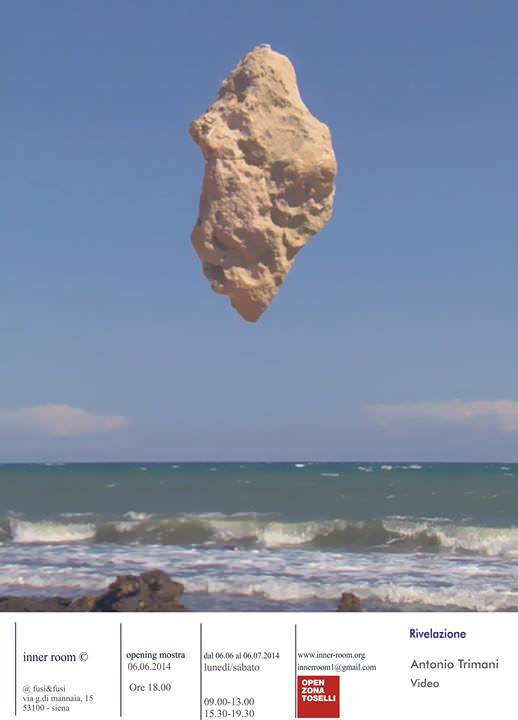 “Se Magritte avesse avuto modo di utilizzare il video, di certo avrebbe rappresentato le sue rivelazioni del quotidiano nel modo in cui ha fatto Antonio Trimani, sospendendo come per improvvisa apparizione un macigno nel mezzo del cielo come appunto in Rivelazione. I video di Antonio Trimani vivono spesso di queste sottili epifanie che modificano la loro essenza fisica secondo tempi e luoghi carichi di trascolorante attesa.