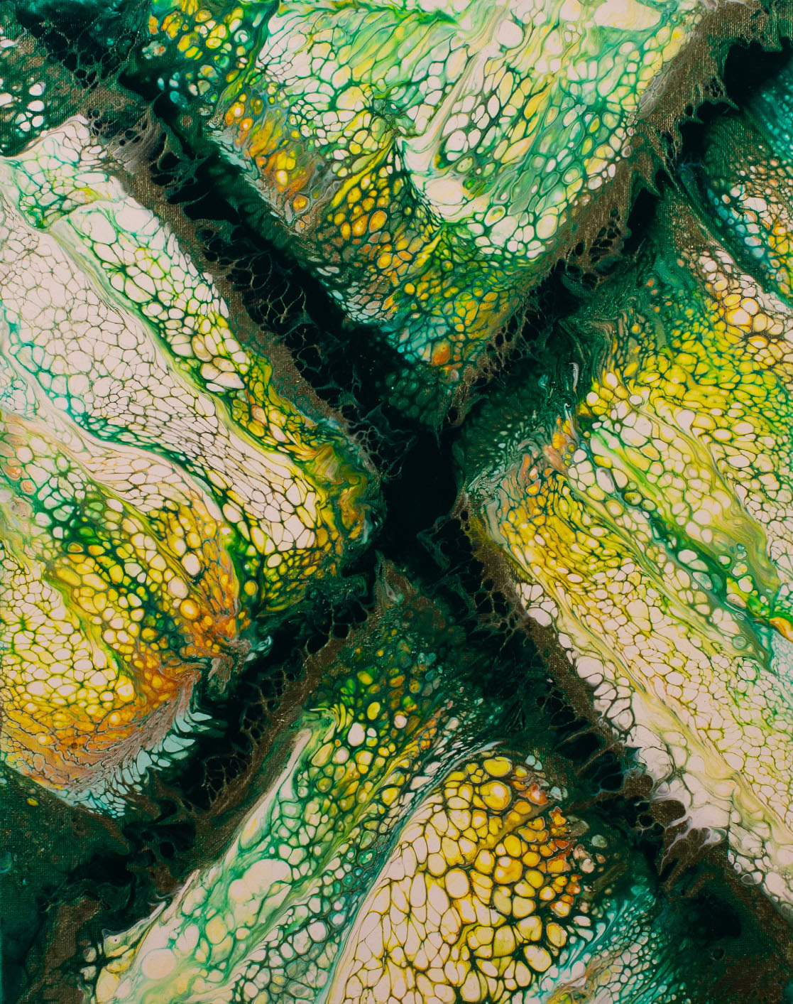 L’arte che viene proposta è essenzialmente astratta. La tecnica è definita “Fluid Painting”: i colori, acrilici, vengono miscelati con un particolare medium al fine di rendere, per l’appunto, fluido il preparato, in modo che l’asciugatura sia lenta.