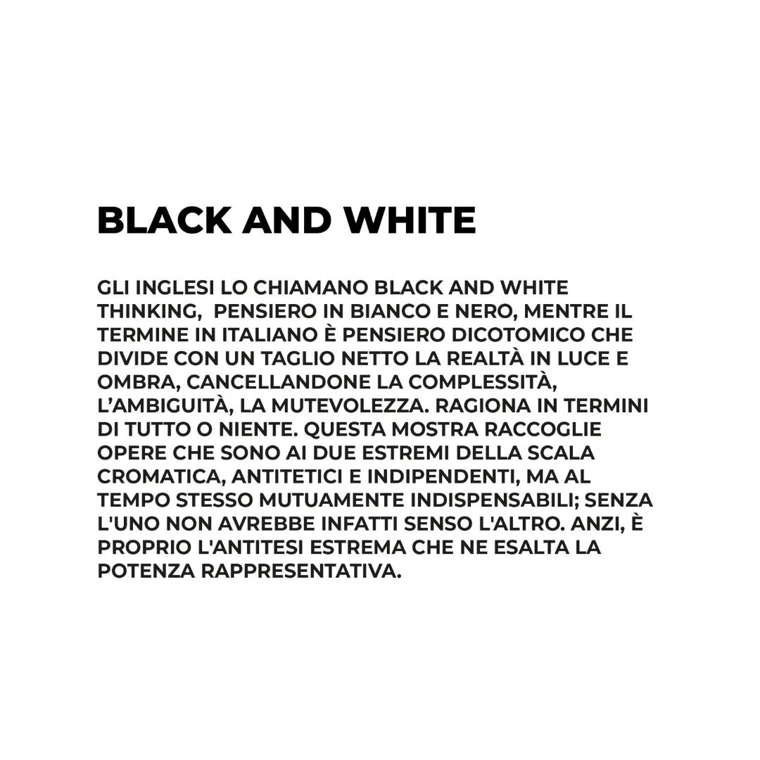 Selezionato per l'occasione un collettivo di opere di ampio respiro, artisti provenienti da tutto il mondo accomunati dall'utilizzo nelle loro opere del bianco o del nero.