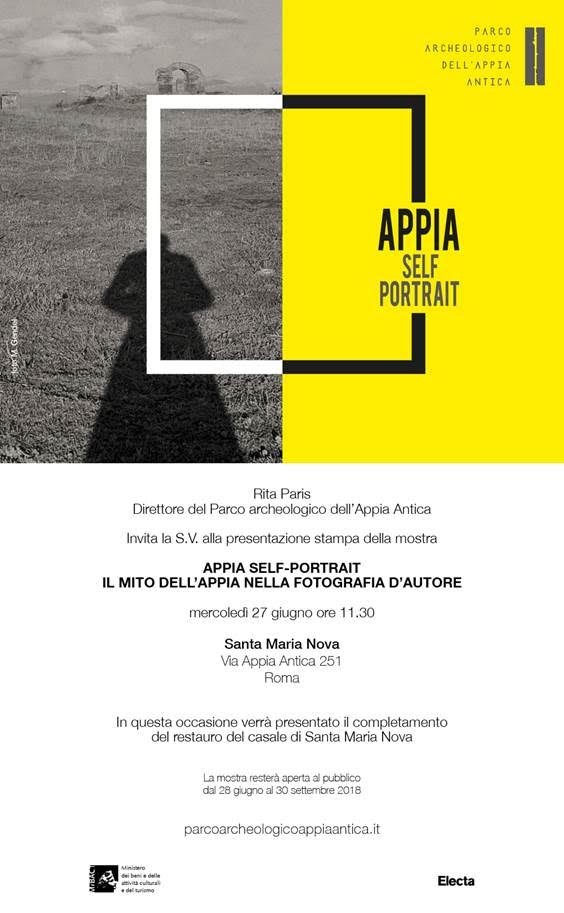 Dal 27 giugno al 30 settembre 2018, le sale e il giardino dell’antica dimora - confinante con Villa dei Quintili e immersa in un paesaggio di straordinaria bellezza - ospitano “Appia Self-portrait. Il mito dell’Appia nella fotografia d’autore”, a cura di Rita Paris con Nunzio Giustozzi, Bartolomeo Mazzotta, Ilaria Sgarbozza e promossa dal Parco Archeologico dell’Appia Antica in collaborazione con Electa.