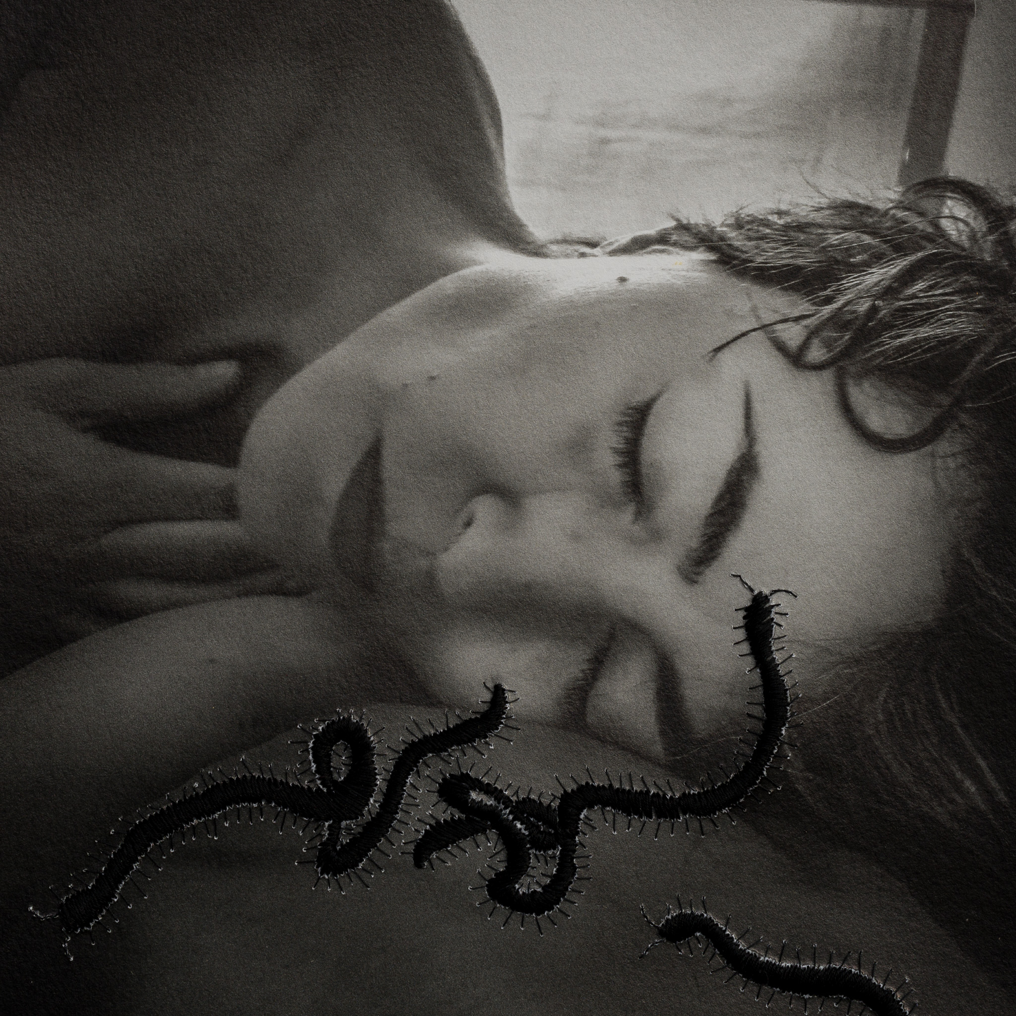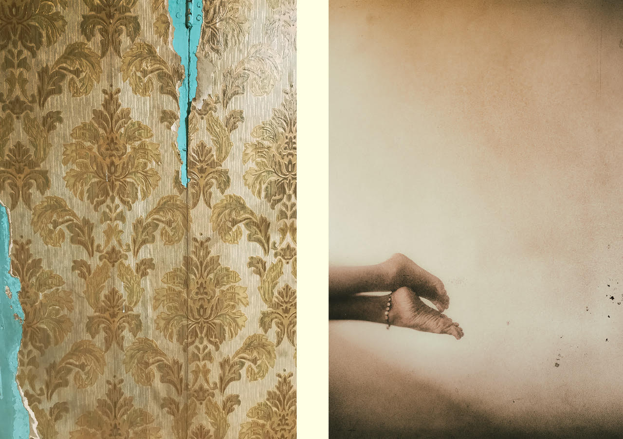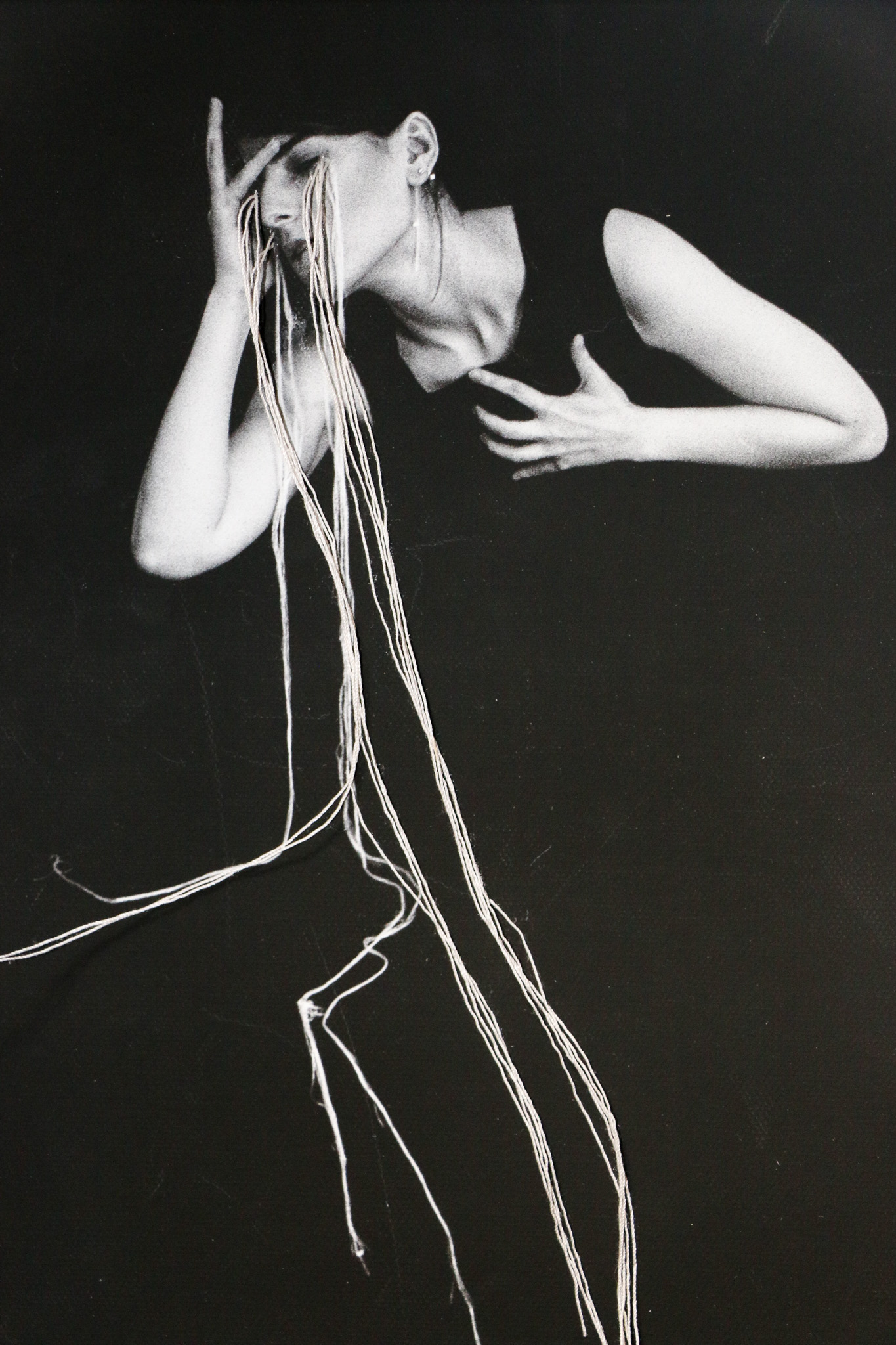 Con ago e filo, Nadia Frasson racconta invece il suo presente e attraverso la fotografia esplora il suo corpo, ne scruta i cambiamenti stupendosi di trovare poesia in quello che agli occhi della società attuale è un difetto da nascondere. Le pieghe, le rughe, i segni del tempo diventano fulcro della sua ricerca. Sovrappone, strappa, avvicina e ricama. Un gioco che è racconto, che diventa armonia sotto i suoi occhi. Tutto, anche il dolore più grande si appiana e con ago e filo narra una storia che la accompagna e che ama condividere.