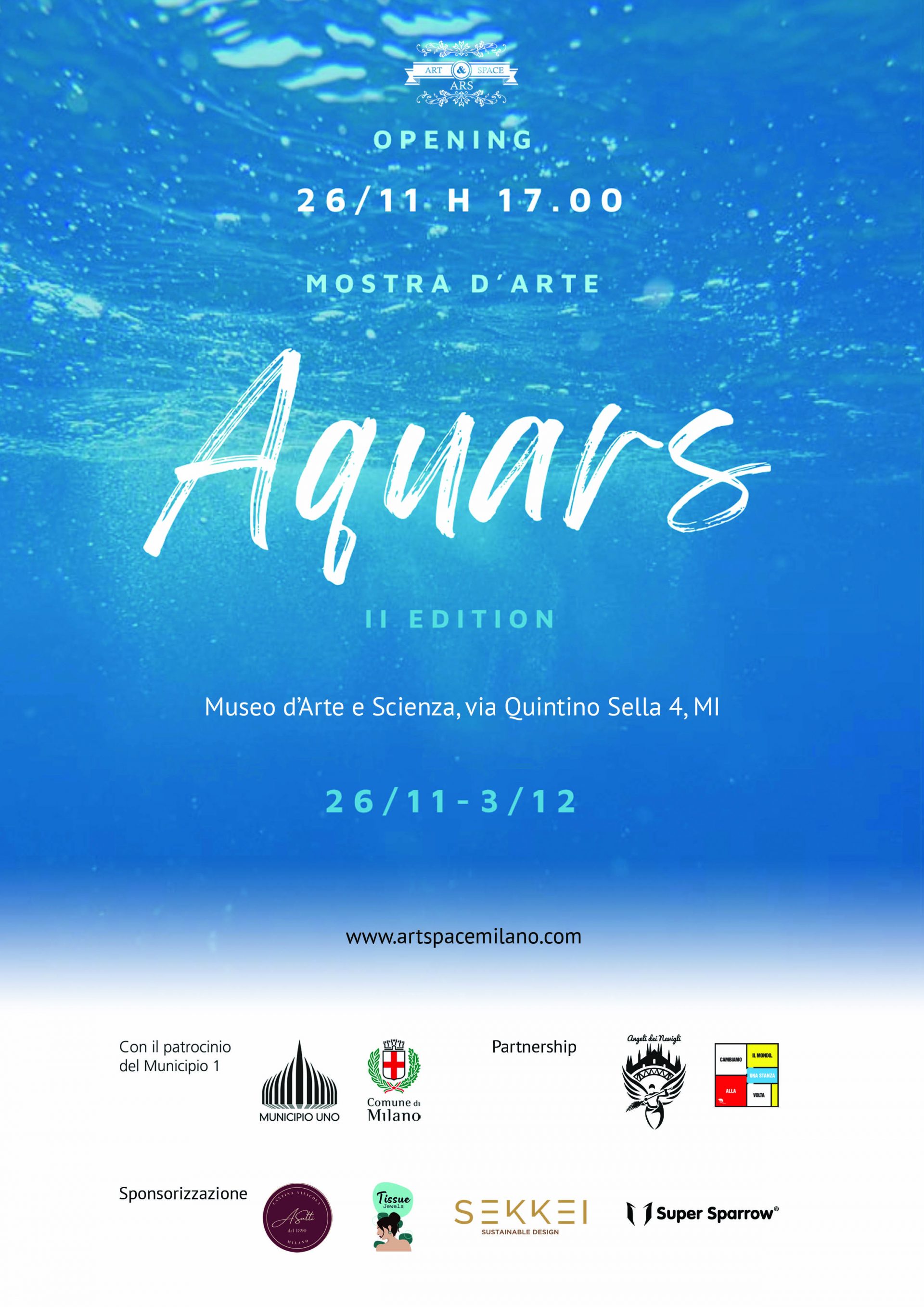 La mostra “AQUARS” avrà luogo dal 26 novembre al 3 dicembre 2022 presso il Museo d’Arte e Scienza in via Quintino Sella 4, Milano. L’iniziativa è patrocinata dal Municipio 1 del Comune di Milano.