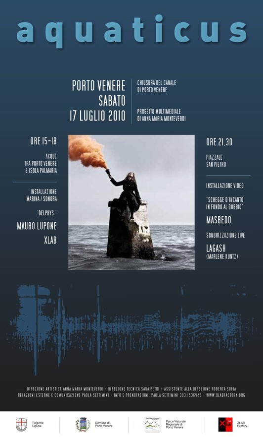 Porto Venere ospita per questa occasione AQUATICUS, seconda edizione di VARI'AZIONI MARINE, evento estivo di installazioni audio-visive d'arte diretto da Anna Maria Monteverdi, che quest'anno ha come simboli cetacei e sirene.