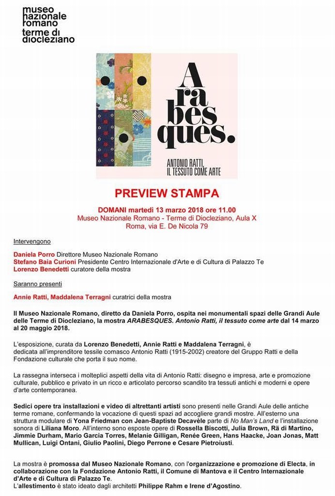 delle Terme di Diocleziano, la mostra ARABESQUES. Antonio Ratti, il tessuto come arte dal 14 marzo