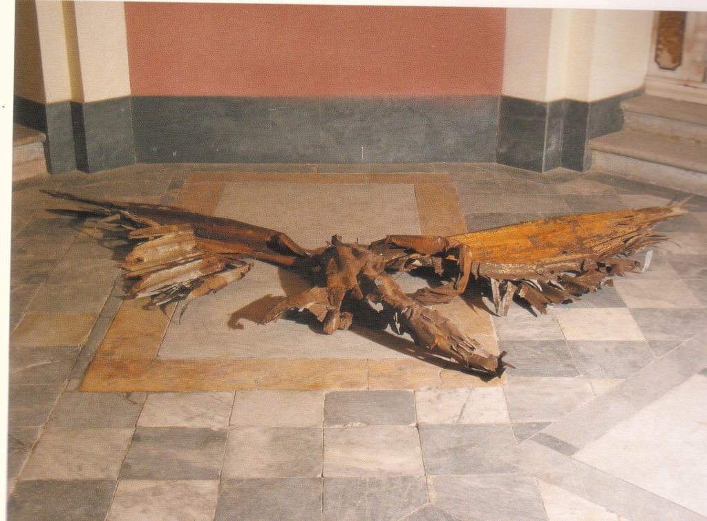 L’installazione rappresenta uno dei recenti lavori dell’artista, da anni impegnato in una ricercaespressiva che ruota intorno al concetto di recupero e riutilizzo di materiali considerati di scarto, come lamiere squarciate, chiodi, segnali stradali, bidoni e barattoli abbandonati