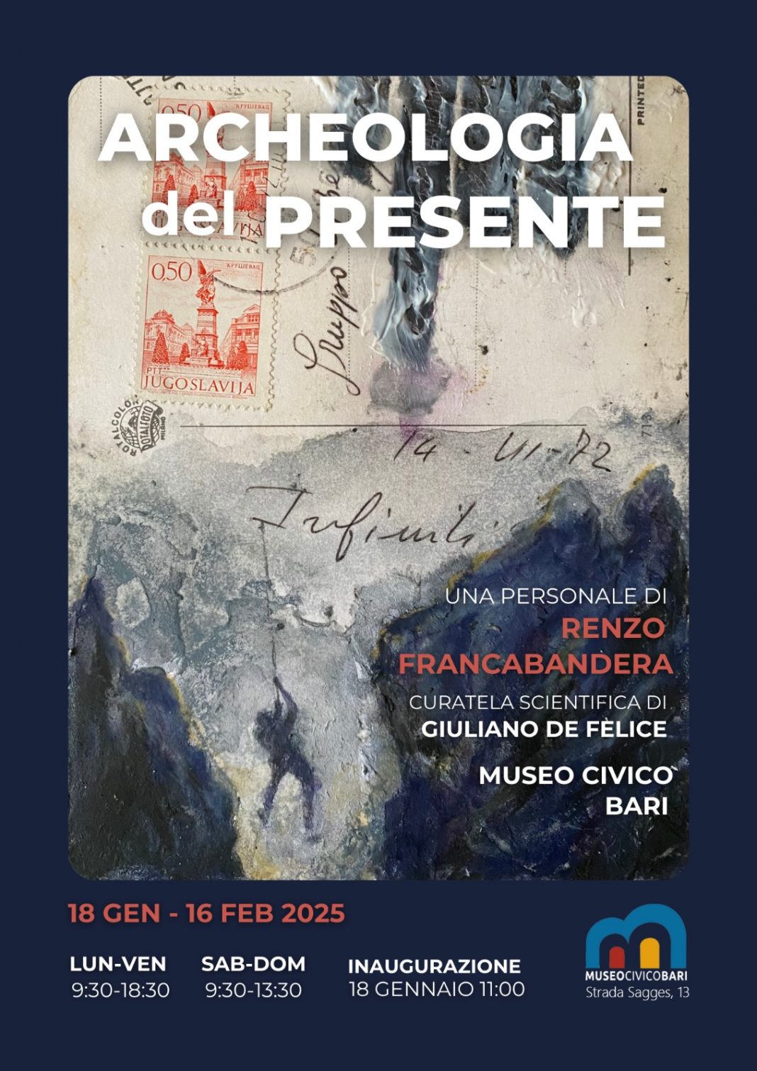 Si inaugura, sabato 18 gennaio alle ore 11:00 al Museo Civico Bari, la mostra “Archeologia del presente” con le opere dell’artista Renzo Francabandera, un viaggio nelle memorie materiali della società contemporanea.
