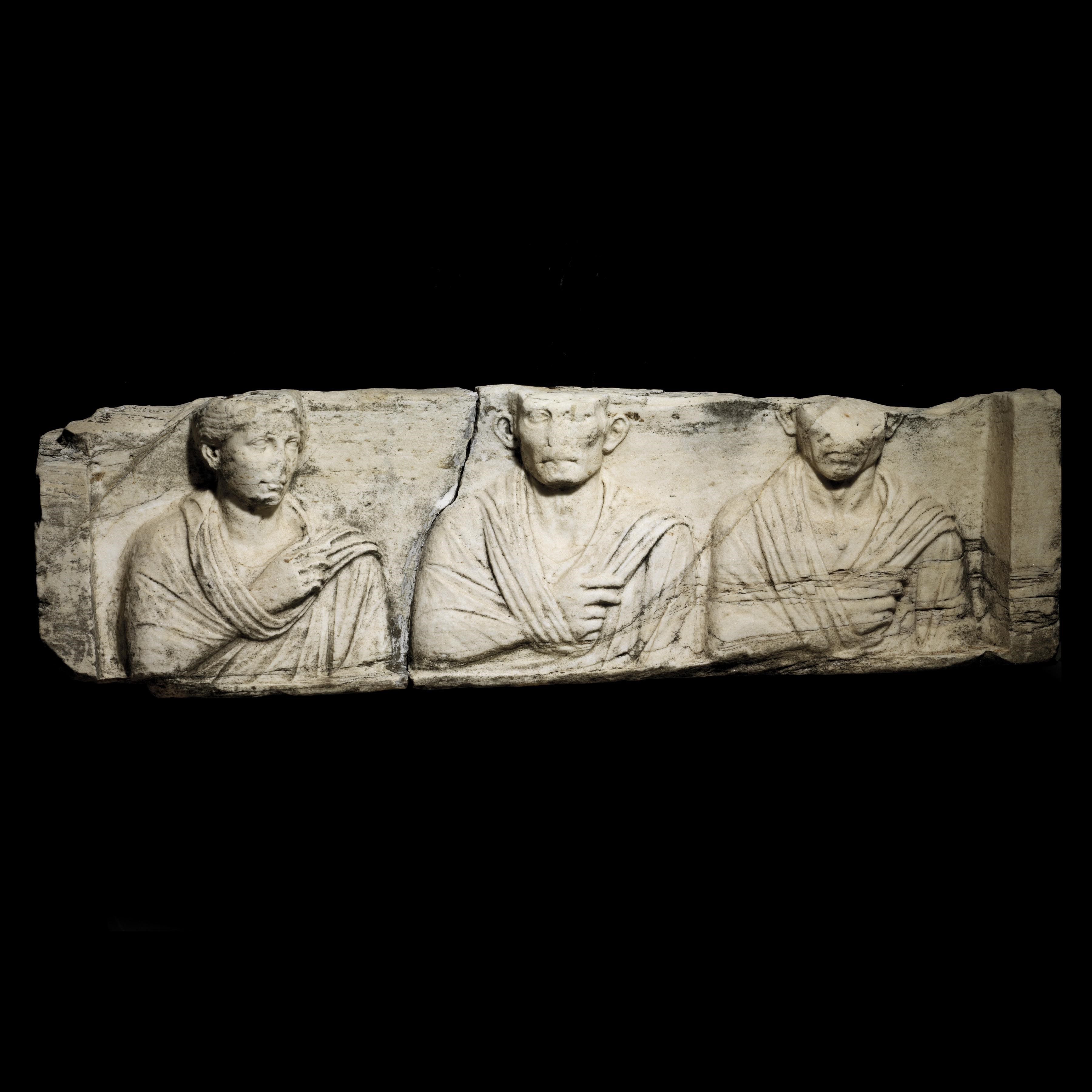 Per quanto riguarda le antichità etrusche, greche e romane, ampia è la serie di proposte scultoree, a partire da un RILIEVO con busto-ritratto femminile di Athedan figlia di Bagadan del II secolo d.C. valutato 30.000/50.000 euro (lotto 122); 30.000/40.000 euro è la richiesta per un altro RILIEVO recante i busti-ritratto di due uomini e una donna, plausibilmente legati tra loro da rapporti di parentela e appartenenti al ceto medio (lotto 117).