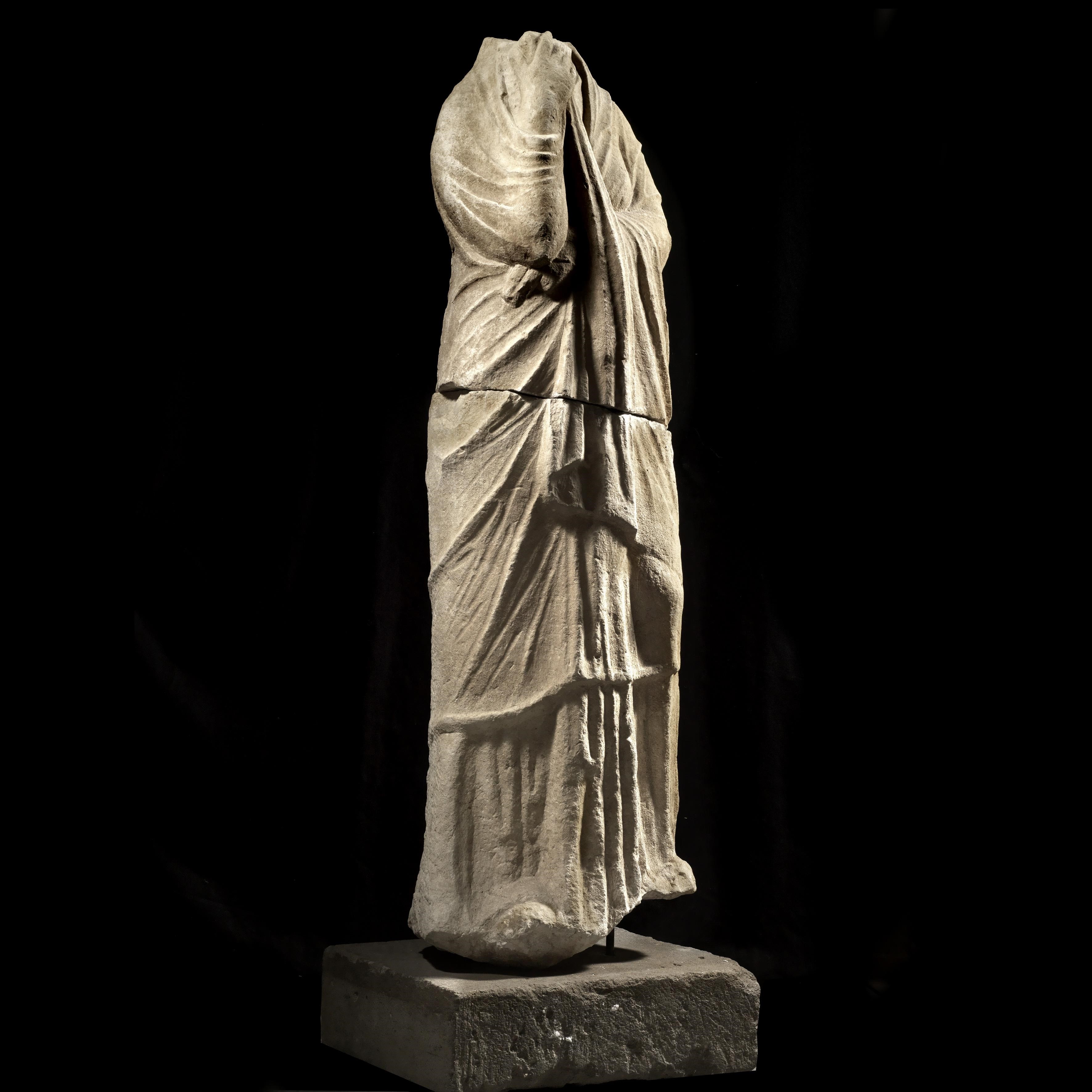 Femminile anche il TORSO in marmo del I-II secolo d.C, caratterizzato dal panneggio morbido del chitone, la cui richiesta è di 15.000/18.000 euro (lotto 74).