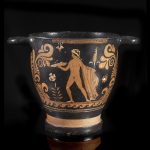 Fra le opere in asta sono incluse raffinate e interessanti testimonianze della ceramica figurata, greca, etrusca e magno greca rappresentata da una cospicua selezione delle svariate officine fra VIII e III secolo a.C.. Segnaliamo un CRATERE-SKYPHOS di produzione apula a figura rosse della metà del IV secolo a.C. che ha una stima di 6.000/7.000 euro (lotto 55), e sempre di produzione apula a figure rosse, ascrivibile alla metà del IV secolo a.C, è un DINOS stimato 6.500/8.500 euro (lotto 31).
