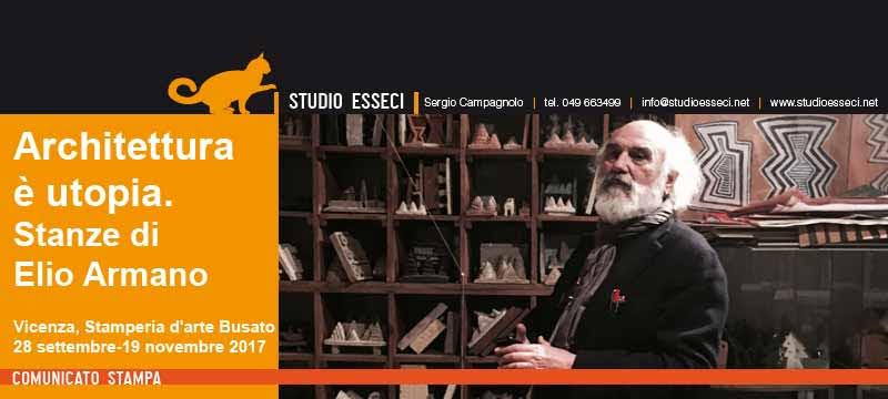 L'esposizione, intitolata "Architettura è utopia. Stanze di Elio Armano", presenta una successione di ambienti site specific creati per l'affascinante palazzo del centro storico, disponendo in una sequenza preziosa e poetica i principali temi della sua produzione artistica. L'impostazione antologica è condotta dalla fascinazione che i temi dell'architettura e dell'utopia hanno avuto sulla sua formazione e sul suo impegno civile, ma è intesa anche essa stessa come un'infilata di "piccoli paesaggi", in cui mostrare sogni e ispirazioni provenienti sia dal mondo naturale che da luoghi immaginari.