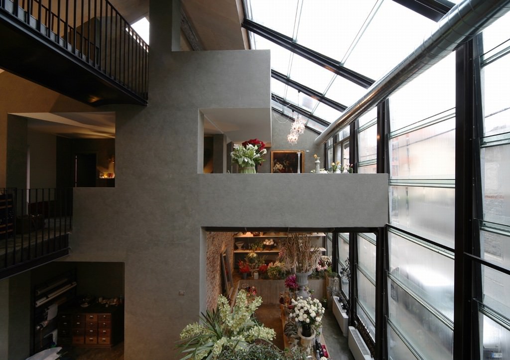 Atelier Fleuriste a Chieri –To, progetto di Stefano Pujatti, “Un singolare intervento a piccola scala che, attraverso l'uso di una facciata innovativa e tecnologica, si connota come elemento di rottura con il contesto circostante”.