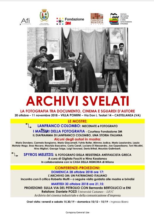 Non ultima la scelta delle mostre, che propongono lo sguardo di un mecenate, Lanfranco Colombo, ai quali tutti i fotografi e i cultori del settore devono qualcosa, per giungere ai Maestri del Diaframma, una collezione originale e peculiare sempre legata alla storia di Colombo, proveniente dall'Archivio della autorevole Fondazione 3M, per concludere l’esposizione con le suggestive immagini del fotografo Spyros Meletzis che documenta la resistenza greca dalla prima linea.