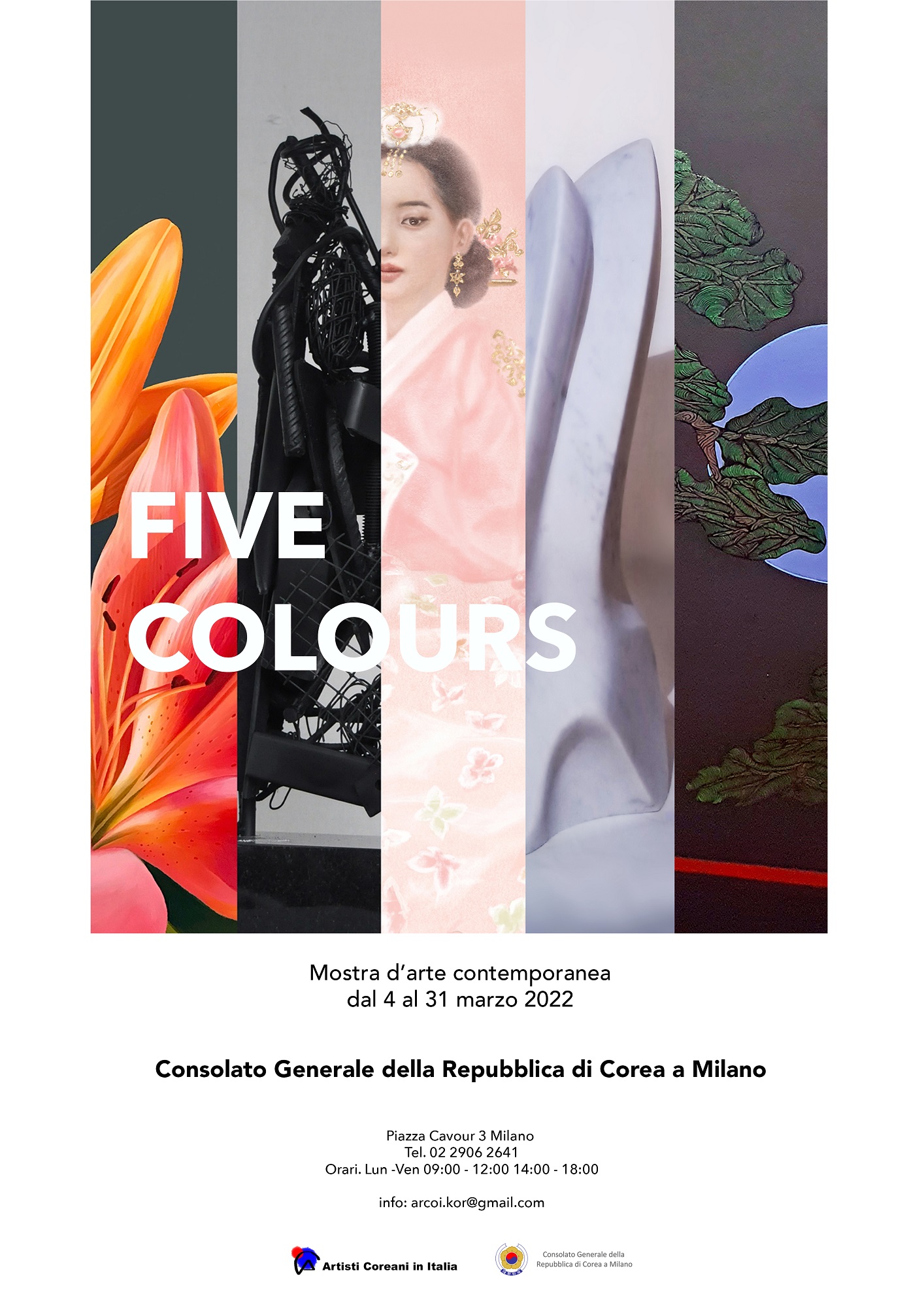 Il Consolato Generale della Repubblica di Corea a Milano e l’Associazione Artisti Coreani in Italia hanno l’immenso piacere di portare le opere d’arte contemporanea delle loro cinque studentesse connazionali alla mostra “5 COLOURS”.