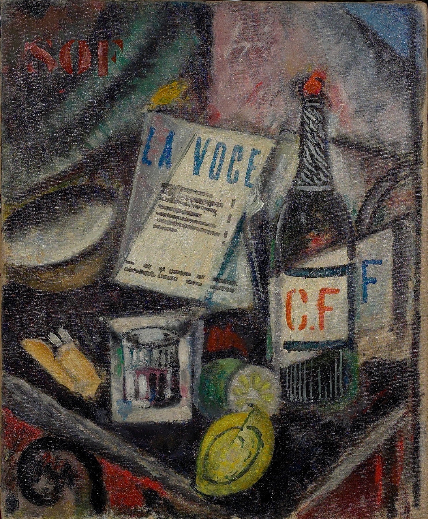Fra gli inediti in mostra anche due autoritratti, quello di Soffici (1946) può considerarsi pagina di pari valore agli scritti autobiografici, mentre nel dipinto di se stesso Carena (1950) esprime un profondo desiderio di astrazione. L’itinerario espositivo propone, con Soffici, una Figura del 1903 che richiama le prime esperienze parigine in ambito postimpressionista e prosegue con una vignetta per le riviste umoristiche che rimanda al lavoro che permise al pittore di sostentarsi economicamente nella capitale francese. L’arte di Soffici si mostra attraverso i paesaggi del 1907 e 1908 che, dopo il rientro da Parigi, danno avvio all’attività che sarà quella più propria dell’autore: l’ordine figurativo che sinteticamente si esprime d’après nature. Nature morte, un affresco del 1932 e un Trofeino del 1948, documentano le fasi diverse che Soffici svolse dal periodo cubofuturista fino al realismo dei valori plastici. Poggio a Caiano, ripreso nei diversi scorci, resta protagonista della cultura sofficiana e ne fa intendere la profondità del rapporto con un luogo semplice ed eletto a insegna di vita. Diversi acquarelli sorprendono per la rarità del portato luminoso, una componente creativa che ebbe un grande estimatore in Emilio Cecchi.