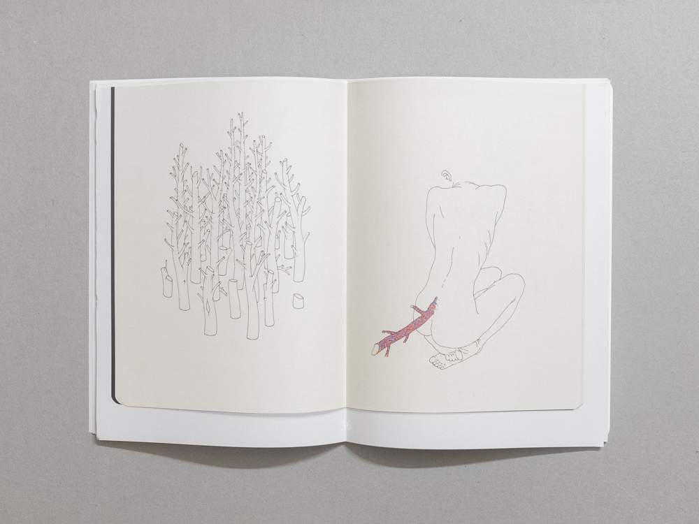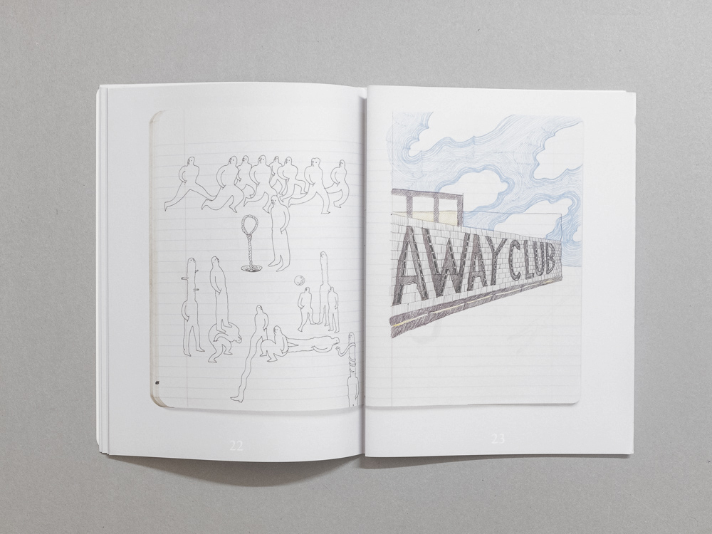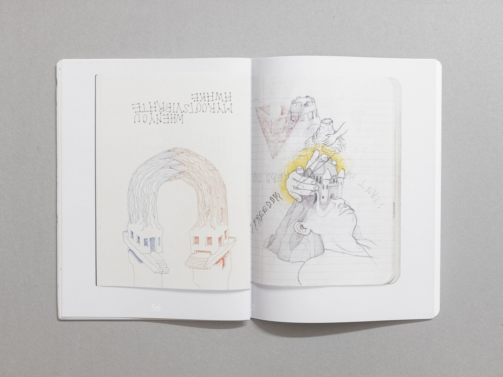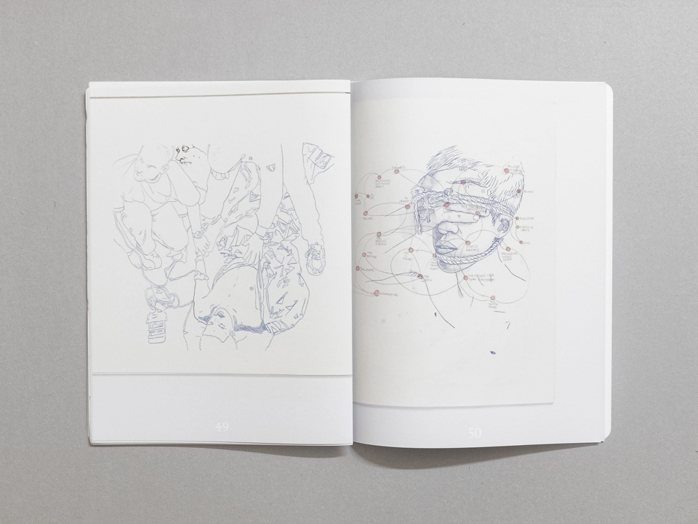La pubblicazione è frutto di un’intensa selezione di disegni realizzati negli ultimi 15 anni. Nel concepirla, si è prestata attenzione alla sovrapposizione di script visivi pensati per azioni performative assieme a materiali scritti che descrivono avvenimenti personali o che approfondiscono ossessioni teoriche. Invece di categorizzare o indicizzare il materiale delle pagine dei taccuini, la coreografia grafica scelta così come le nuove parole scritte da Allison Grimaldi Donahue, abbracciano un lessico di frammenti, di sovrapposizioni casuali e di ricordi vicini, innescati, ma non contenuti, nei disegni stessi.”