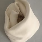 Le sculture di Monica Sarandrea esprimono la connessione tra materia e spirito, suggerendo come la natura stessa sia un dono prezioso da proteggere. In una delle sue opere esposte il bianco del tessuto scolpito, sembra aprirsi per rivelare spighe dorate, trasmettendo così un senso di purezza e speranza, ricordandoci che dalla terra nasce la vita.