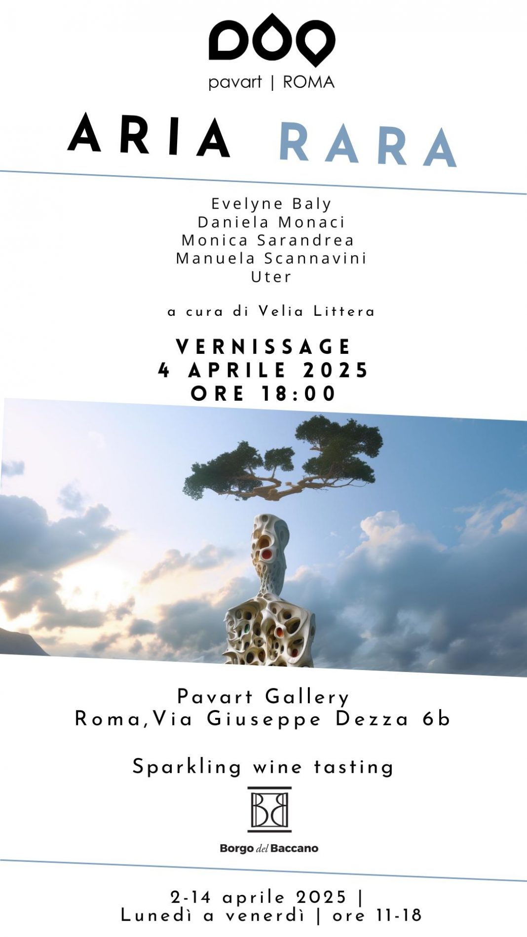 Roma, 4 aprile 2025 prende il via l'edizione di Primavera delle Strade dell'arte a Monteverde: dalle ore 18 alle 21 una ventina tra artisti, studi e spazi artistici aperti gratuitamente, aspettano il pubblico in tutto il quartiere per brindare al ritorno della primavera. Pavart Gallery, per l’occasione, inaugura la mostra collettiva d’arte contemporanea "ARIA RARA" curata da Velia Littera.