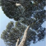 Le fotografie degli alberi di Daniela Monaci si riflettono nel cielo creano un effetto visivo che spinge lo spettatore a riconsiderare la propria percezione dello spazio e della realtà, un invito a vedere la natura non solo come elemento statico, ma come qualcosa di dinamico, in costante dialogo con l’ambiente circostante.