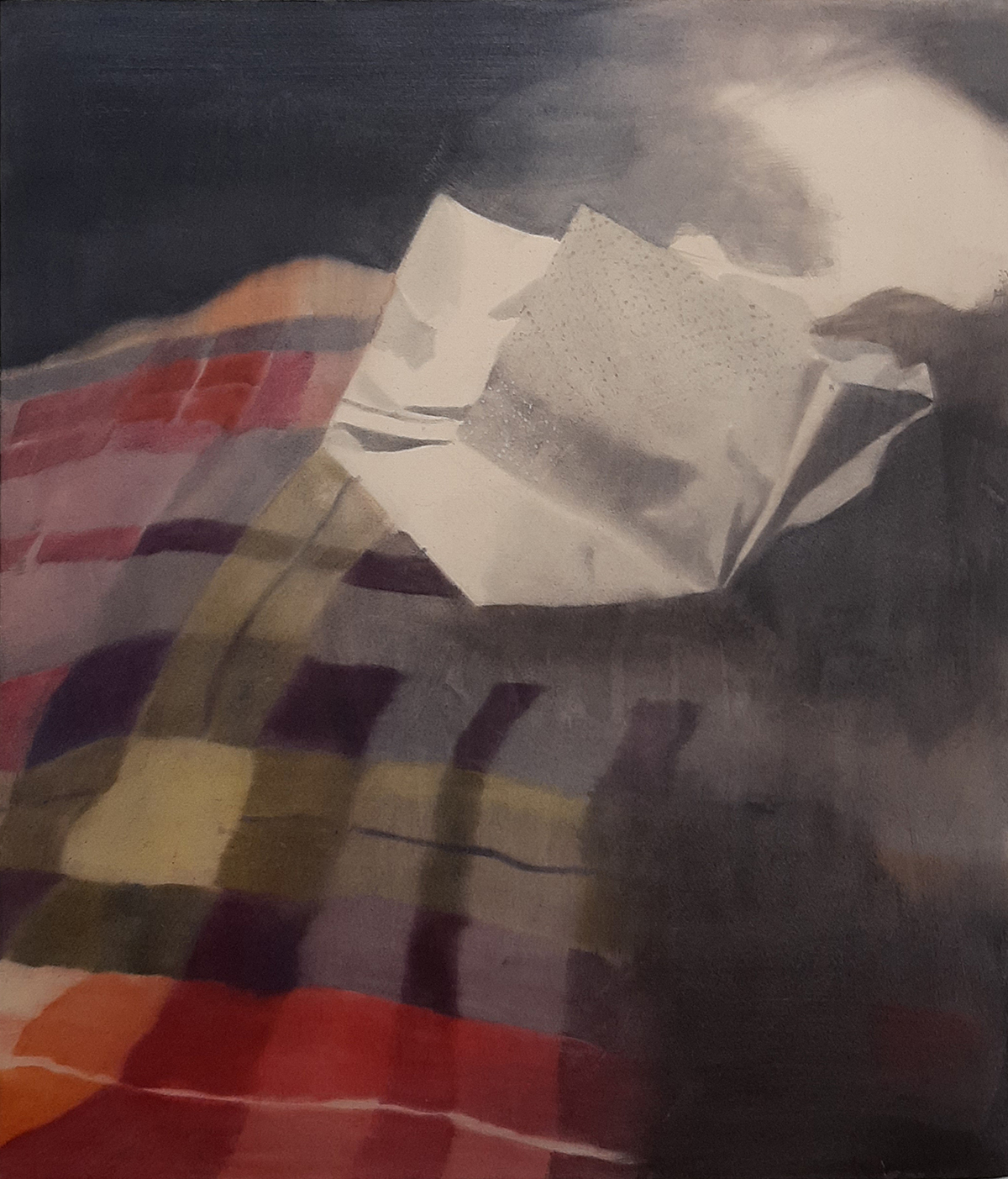 L’artista propone una selezione di opere pittoriche che tratteggiano un percorso obliquo che si snoda nell’ambiente curvilineo della galleria utilizzando formati molto diversi tra di loro: dal dipinto evocativo di due metri, alla miniatura sulla tavola da icone. Il nesso narrativo è un movimento che Arianna Marcolin immagina continuo, dalla memoria più remota alla riflessione sulle cose brevi di tutti i giorni, e che si svolge nello sguardo dello spettatore, unico elemento umano a muoversi nello spazio.