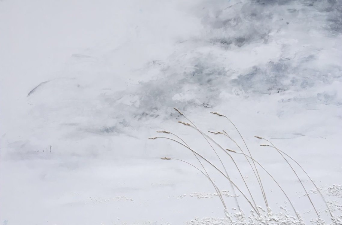 I dipinti di Arianna raggiungono dimensioni considerevoli dove l'osservatore può davvero sperimentare un'immersione in questi paesaggi sconfinati. Visioni poetiche, ricordi d'infanzia stesi su grandi tele dove compaiono semi, fili di paglia e terra calpestata.
