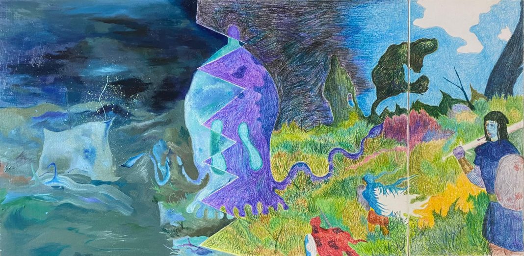 'Incendio di brina' rappresenta un antitetico paradosso, così come antitetiche e paradossali sono le atmosfere nei lavori degli artisti in mostra. Ariele Bacchetti, con base a Venezia, e Xueqing Zhu, vive e lavora tra Cina e Italia, hanno studiato pittura frequentando durante gli stessi anni l’Atelier F presso l’Accademia di Belle Arti di Venezia, entrando in contatto con realtà quali Extra Ordinario Workshop a Venezia e Dolomiti Contemporanee nell’Ex Villaggio Eni a Borca di Cadore. Il loro lavoro sviluppa un nuovo dialogo nello spazio di Luogo Arte Contemporanea, nato nel 2023 su iniziativa di Daniela Alastra e situato a Verona al n°43 di via Carducci, in un contesto urbano in cui le tradizionali attività commerciali sono state via via riqualificate da nuove iniziative a carattere creativo e culturale.