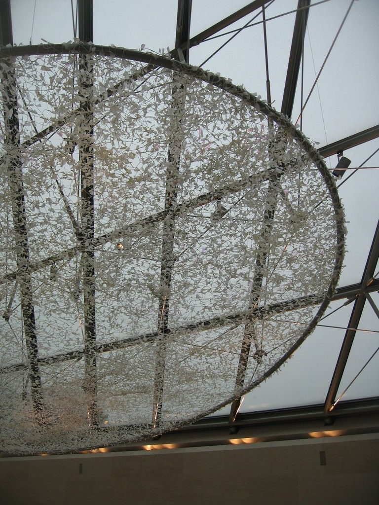 Da vent’anni Arlette recupera la carta privilegiando quella leggera che avvolge le arance, gli amaretti di Saronno, le caramelle e i Baci, carta velina che lei fila con le dita e che, nodo dopo nodo, trasforma in leggiadre cascate trasparenti. Carte che lei spesso recupera gironzolando a fine mattina nei mercati rionali o che le inviano da tutto il mondo decine di amici che conoscono la sua arte.