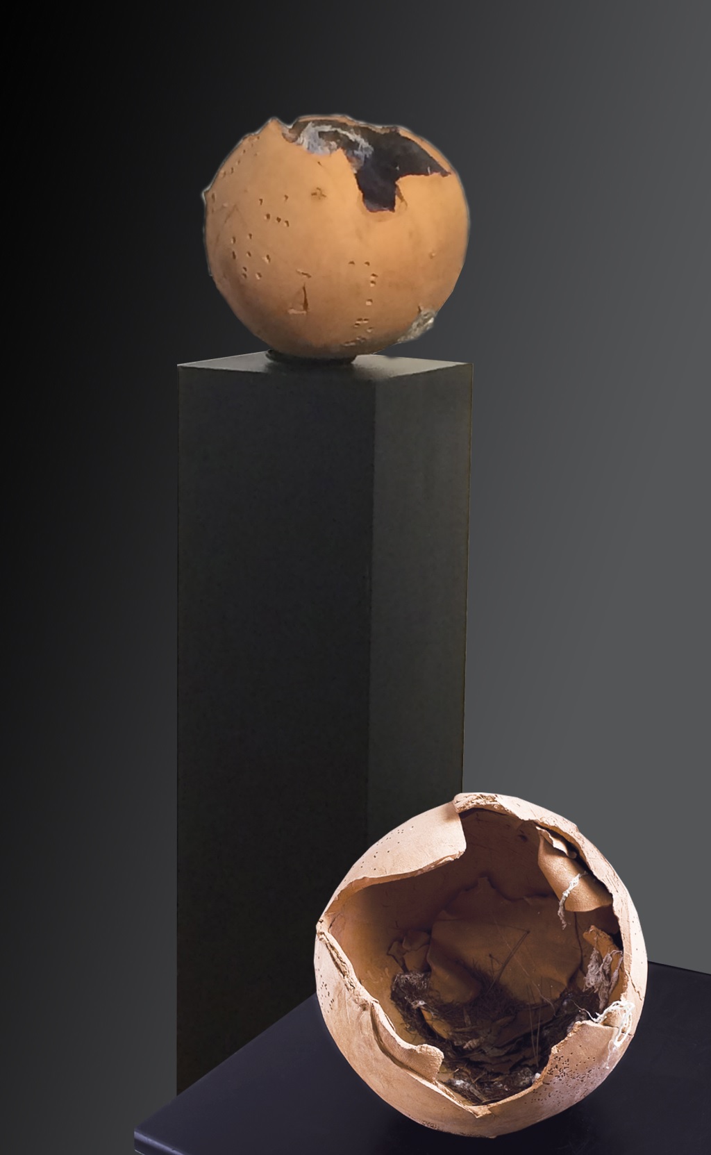 Ogni opera, spesso dalla presenza imponente, presenta frammenti di fragilità che invitano a una riflessione sulla caducità della vita, a partire dagli “Scudi” che, sebbene richiamino i primi oggetti di difesa dell'uomo, nella loro imperfezione, nella loro forma irregolare e nelle crepe mostrano il bisogno di un’ulteriore riflessione: increspature che per Armanda Verdirame diventano punti di forza della sua stessa ricerca poetica e artistica.