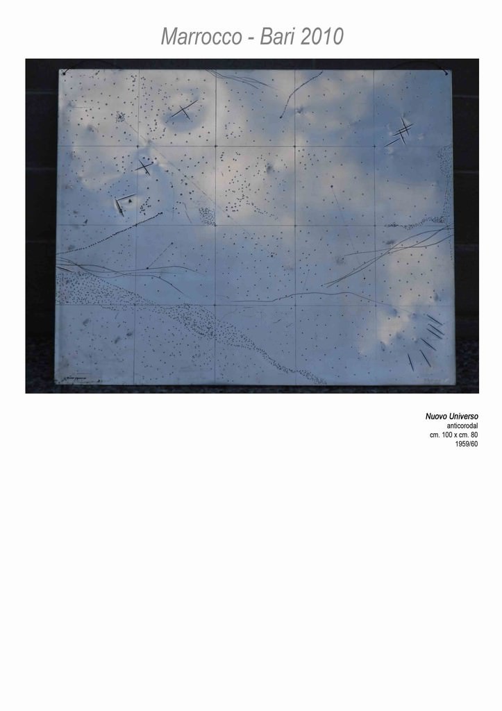 L’esposizione propone alcuni esempi delle opere eseguite da Marrocco nell’arco di un ventennio a partire da fine anni ’50, poco prima cioè del suo trasferimento a Milano dal Salento