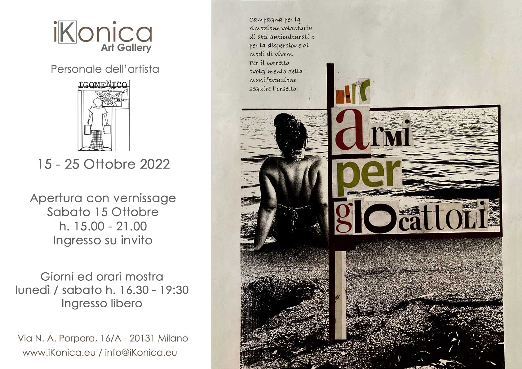 15 - 25 Ottobre 2022 - Opening e vernissage su invito, sabato 15 Ottobre dalle h. 16.30 alle 21.00
