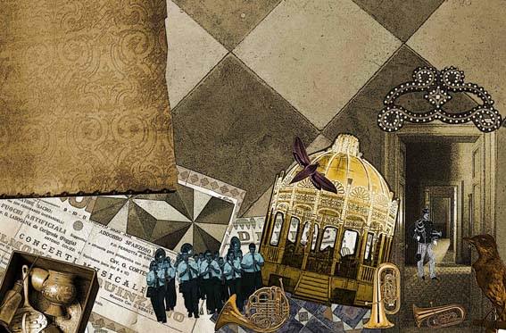 Scrive la curatrice Gioia Perrone, “Palazzo Guerrieri, dimora privata dei primi del '900 che generosamente da aprile accoglie il pubblico, la comunità, le visioni proposte, si trasformerà in una bizzarra macchina contemporanea. Macchina che macina e frantuma come caleidoscopio il "mondo banda", partendo dai segni propri di quel mondo, la custodia (la cassa armonica utero e teatro, la divisa dei bandisti e la sua storia, il luogo in cui si ripone lo strumento musicale); il repertorio (l'opera , che dai teatri ufficiali arriva nei paesini e al popolo attraverso le bande, soprattutto nel Sud Italia); il rapporto tra il musicante de il suo strumento, come tra il musicante ed il suo lavoro d'origine (spesso era un altro) e quello che intercorre tra i bandisti che si muovono suonando insieme, attraversando spazi, luoghi, storie. Dal disegno alla pittura allo strumento fotografia, all'installazione,